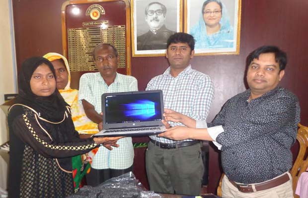 জাতীয় তথ্য বাতায়নের মাধ্যমে জানতে পেরে বাগাতিপাড়ার মেধাবী সজনী পেল ল্যাপটপ